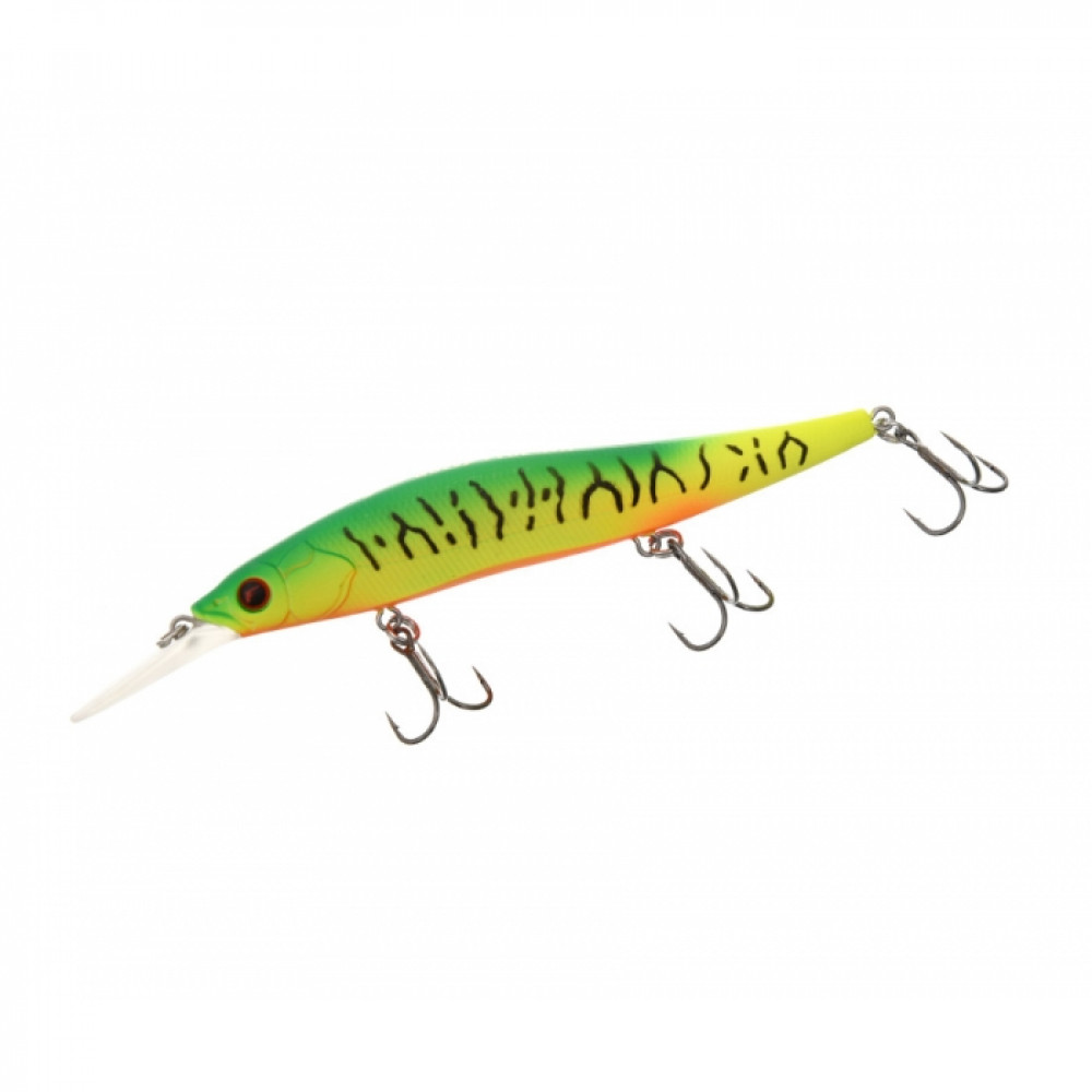 Плавающий воблер Flagman Bossy 110 F DR – отличная приманка для быстрого и эффективного облова обширных мелководий, несмотря на его большую лопатку. Этот воблер минноу вытянутой формы весит 14,4 г и имеет длину 110 мм. Благодаря системе дальнего заброса Flagman Bossy 110 F летит не только далеко, но и очень точно. Подвижные стальные шарики при забросе уходят далеко в хвост, смещая туда центр тяжести. При первом же рывке они возвращаются на место и фиксируются специальным приливом снизу, благодаря чему при проводке балансировка приманки остается неизменной. Шарики издают негромкий звук высокой частоты. Воблер Bossy 110 F DR обладает собственной игрой, но равномерная проводка не выступает основной. Его специализация – твичинг. При рывках приманка совершает длинные «заплывы» по инерции, имеющие сложную траекторию. Причем, Bossy 110 F сразу резко отклоняется в сторону, и амплитуда его движений получается довольно большой. Данная модель Bossy – плавающая, после остановки движения приманка медленно всплывает в толще воды, что часто провоцирует на атаку даже слабоактивную щуку и крупного окуня. Лобовое сопротивление воблера не слишком велико, поэтому для рывковой проводки Flagman Bossy 110F-DR нет необходимости использовать сверхжесткие удилища
